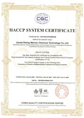 公司證書公司通過了ISO9001:2015、HACCP認證和FSSC22000等質(zhì)量安全管理體系認證。